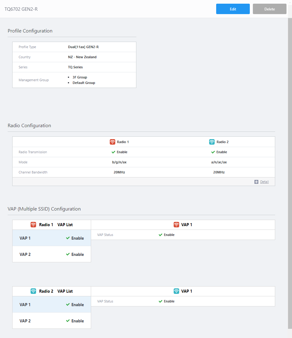 The settings of the AP Profile "TQ6702 GEN2-R" will be displayed.