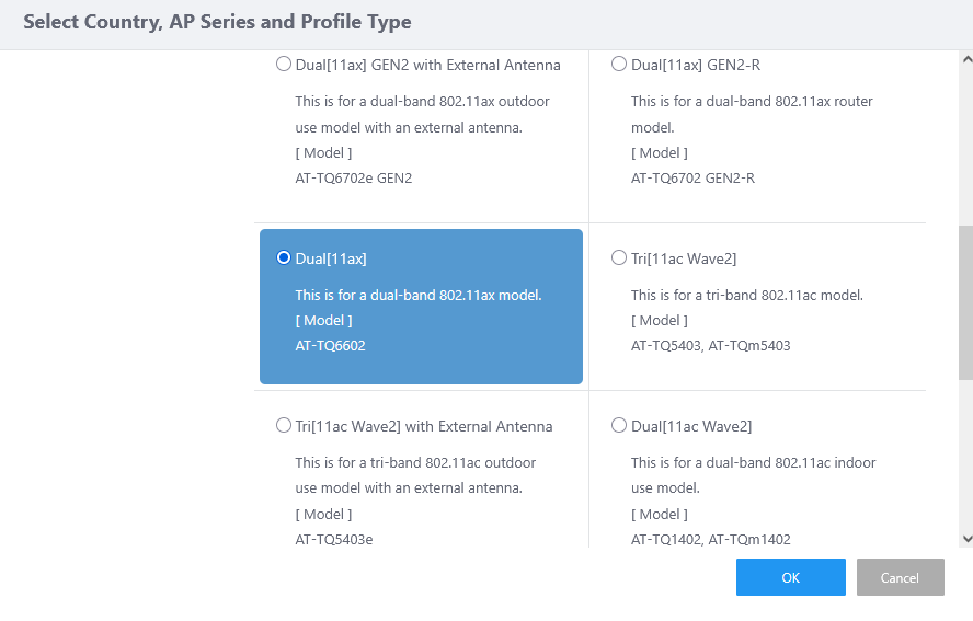 The "Select Country, AP Series and Profile Type" dialog box will appear.