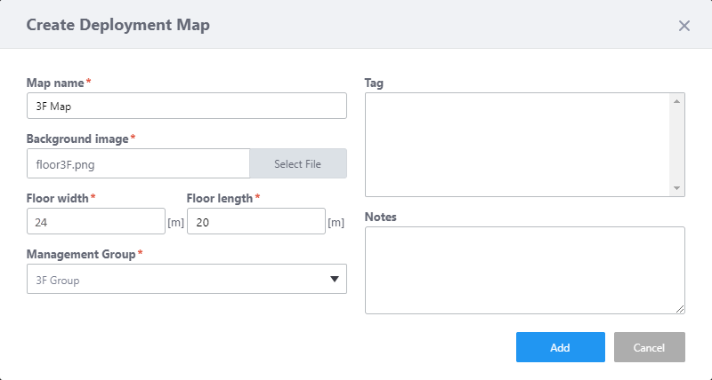 - Specify the floor map image by using the "Select File" button in the "Background image" section.
