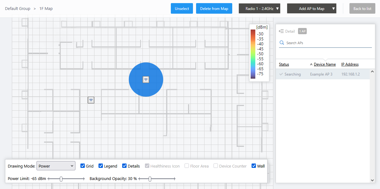 NoteIf you place many APs on a large floor map, it may take time to load the floor map, or to place APs on the map.