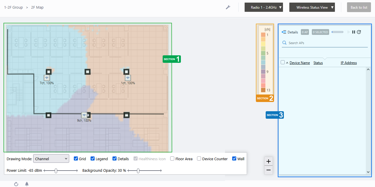 | "Wireless Information" button | Switches the list content to the wireless configuration of the APs placed on the floor map. |