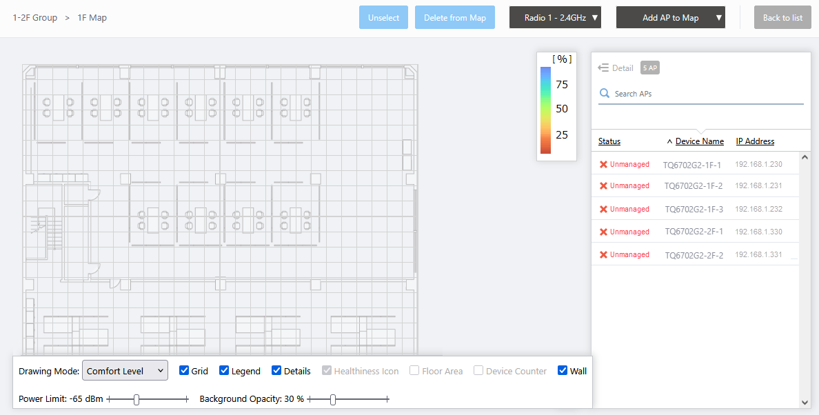 The Wireless Status View for the "1F Map" will appear.