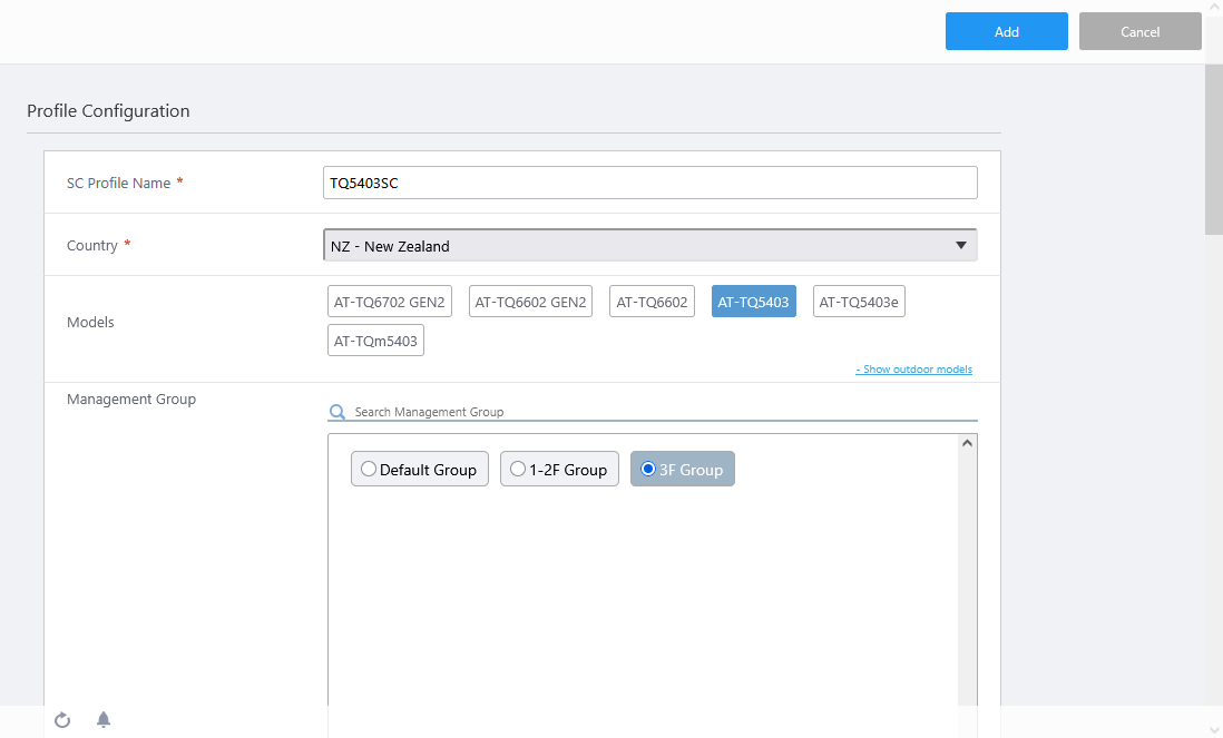 Select the model of the AP or the Management Group to be applied.