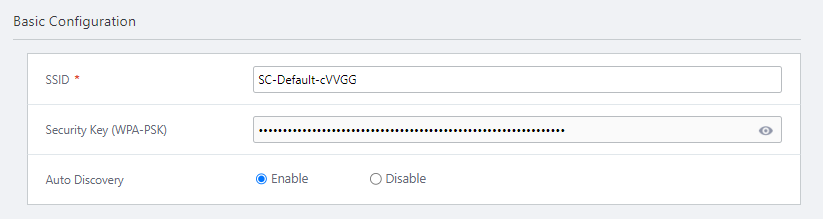 The security key is a pre-shared key used for the SC management SSID. The 63 randomly generated alphanumeric characters (mixed case) are automatically set and cannot be changed.