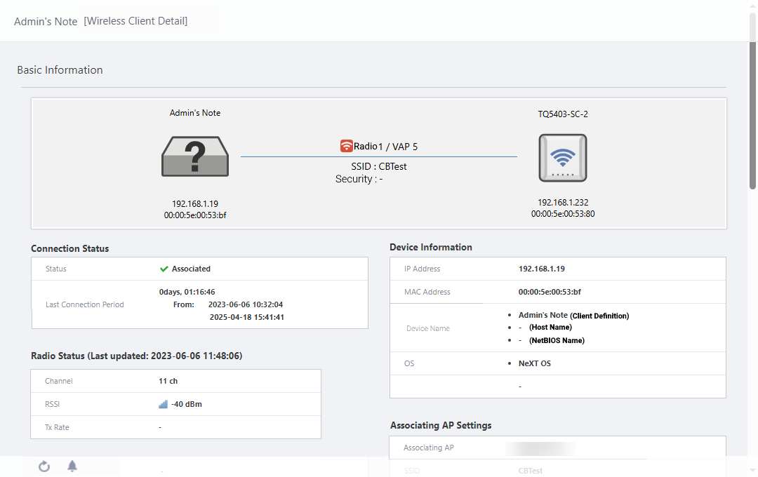 - By clicking "Detail" button on the list, you can open "Wireless Client Detail" screen in a new tab or window of the web brouser.