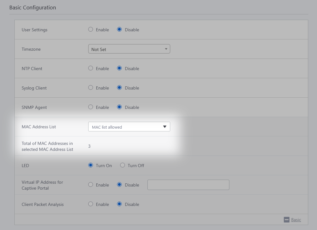 - Specify a MAC Address List to use in the "System" section's "MAC Address List".