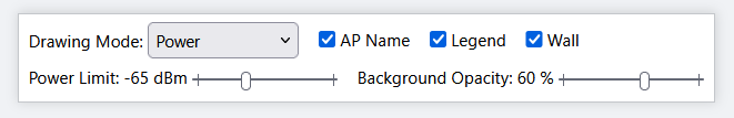 | Drawing Mode | Lets you select what to show on the heatmap. Options are power (signal strength) and channel. |