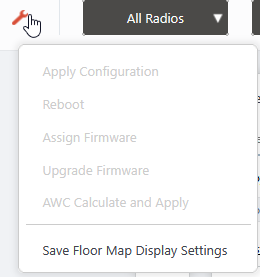 | "Spanner" icon | Hovering the mouse cursor over the Spanner icon shows a dropdown menu including some operations for managed APs. In the Rogue AP View, the options other than "Save Floor Map Display Settings" are irrelevant and disabled. ![]()