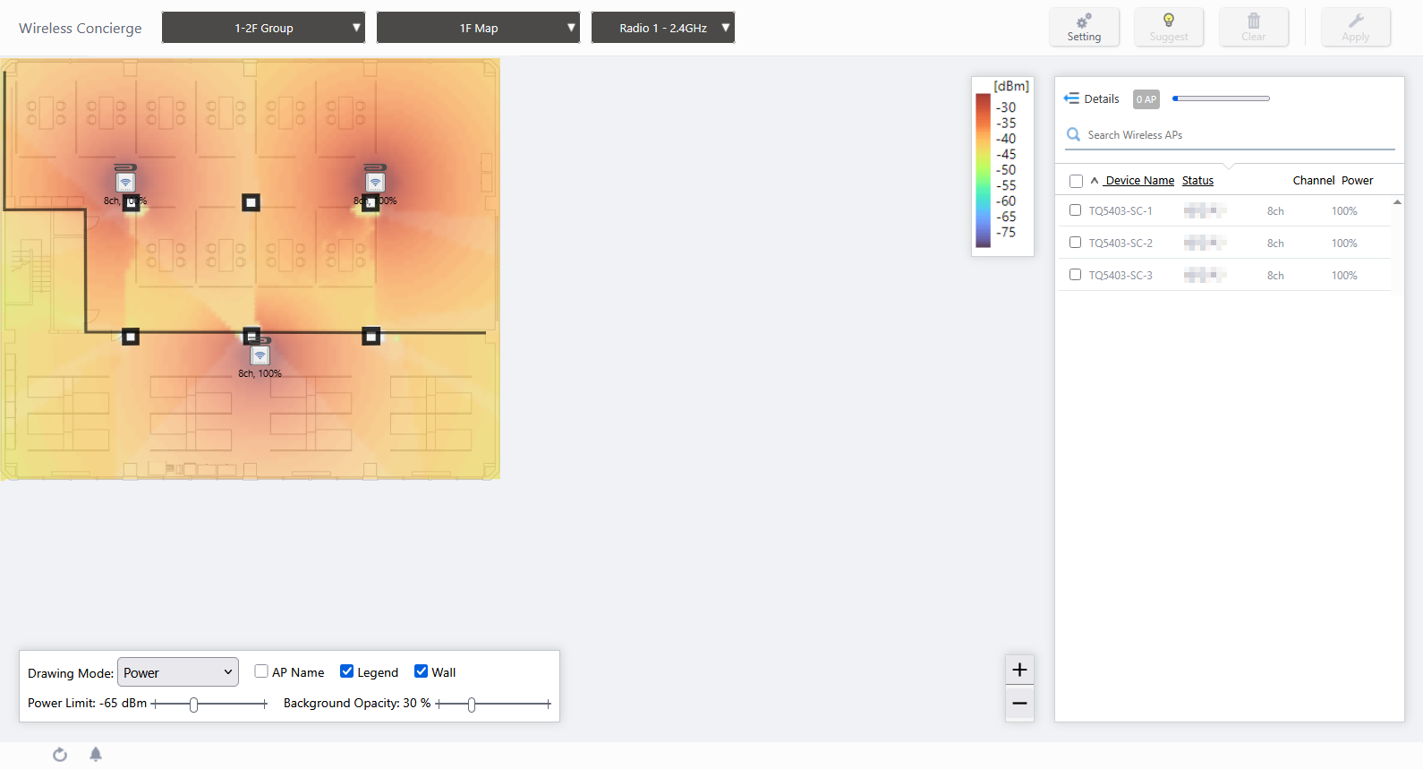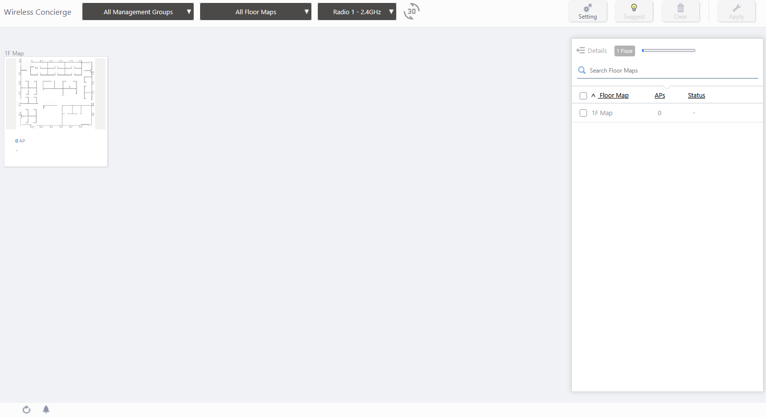 | Status (Radio 1 / Radio 2 / Radio 3) | Displays the suggestions status for the floor map or wireless APs.