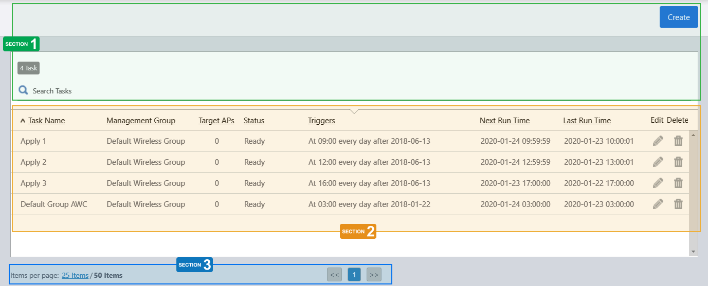 You can use Tasks to perform operations such as applying configuration, updating firmware, and applying AWC calculation results at specific times.