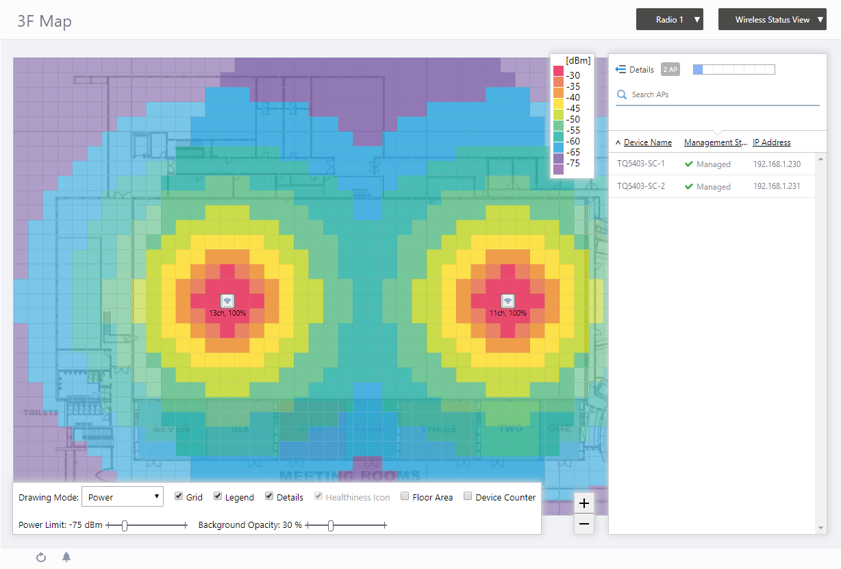 After all the above configuration, you can see the "Details [Smart Connect View]" of the "Floor Map" screen shows the same settings as the configuration example presented.
