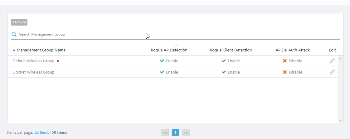 2. Click the "Edit" (pencil icon) button for the Management Group you want to configure IDS/IPS for.