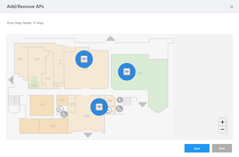 APs placed on the "1F Map" will be displayed as icons on the map.