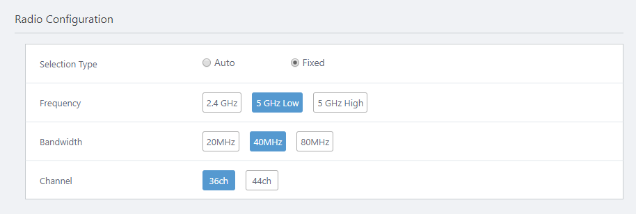 - In "Selection Type" of "Radio Configuration", select whether to automatically set the channel to use Smart Connect or set it to fixed.