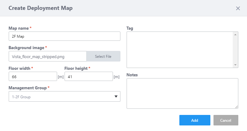 - Specify the floor map image by using the "Select File" button in the "Background image" section.