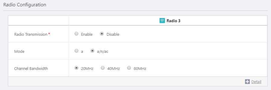 - You can specify configuration parameters for radio waves in the "Radio Configuration" section.
