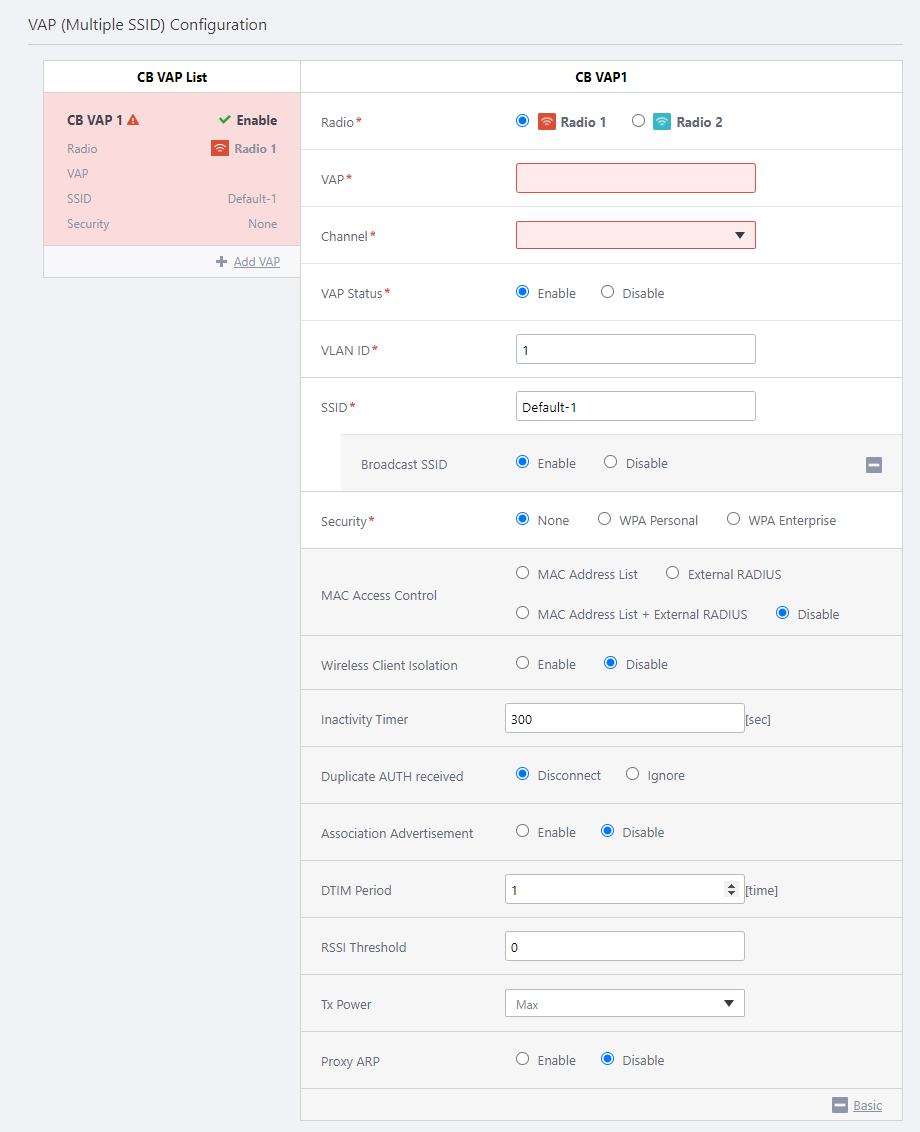 VAP (Multiple SSID) Configuration