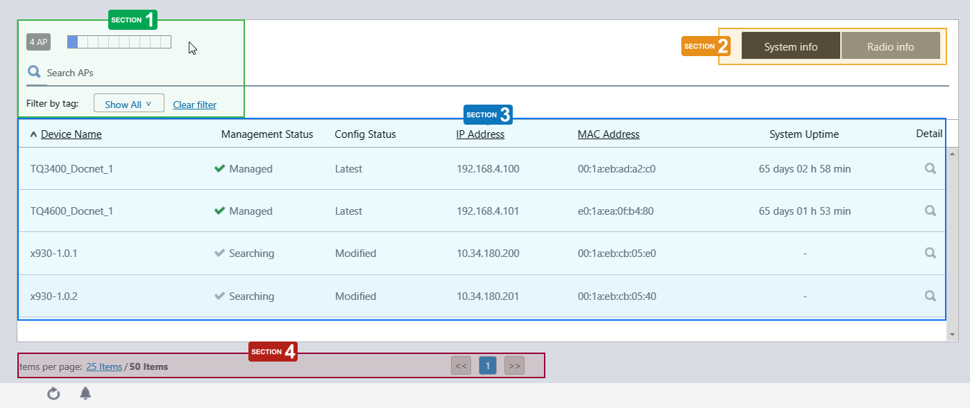 | Device Name | Shows the name of the AP. If the AP was added from the Guest Device List, the guest device name is displayed. |