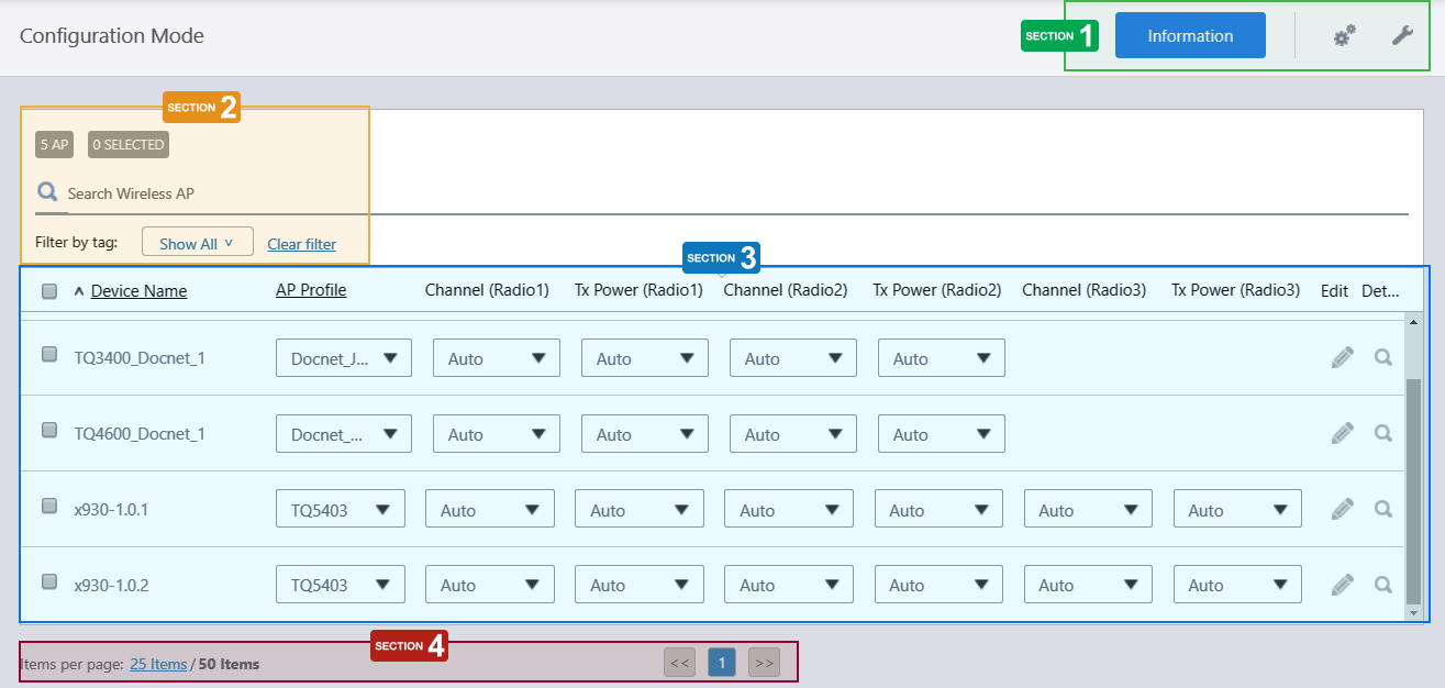 NoteWhen you search, sort or use tags to filter APs on this page, the AP selection status will be reset.