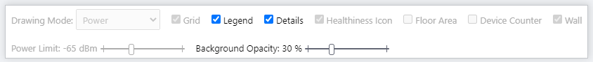 | Drawing Mode | Lets you select what to show on the heatmap. Options are power (signal strength) and channel. |