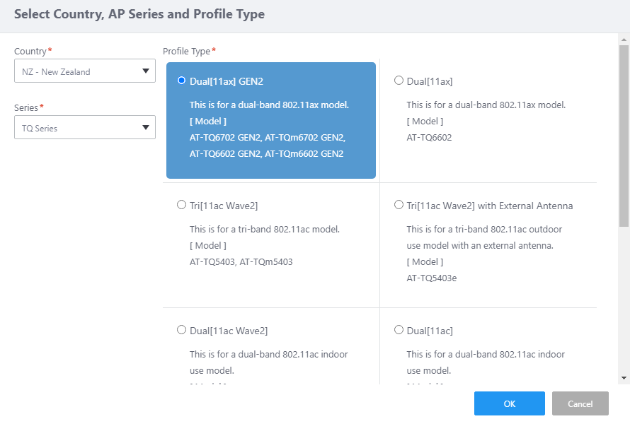 The "Select Country, AP Series and Profile Type" dialog box will appear.