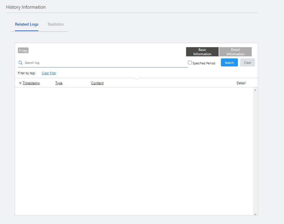 | "Search" button | Searches the history of logs that match the criteria for the "Specified Period". |