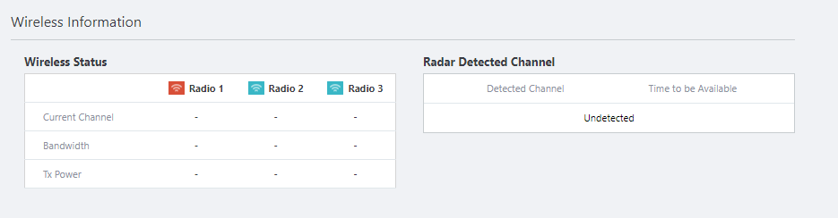 | Channe Bandwidth | Displays the bandwidth for each radio. |