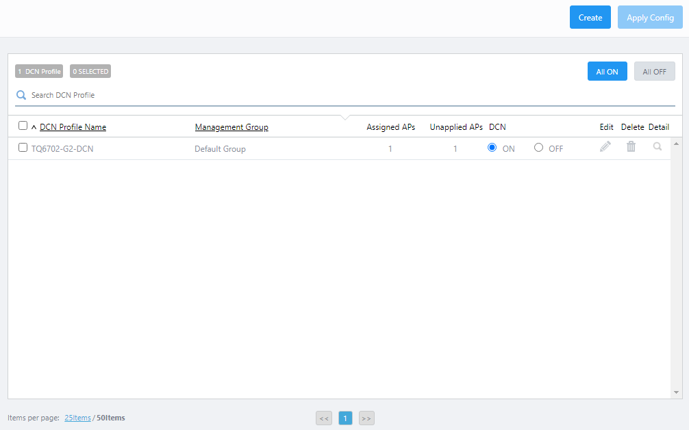 For wireless APs to which the AP profile has already been applied, only the necessary changes can be applied from the "DCN Profile" screen.- Check the box to the far left of the target DCN profile row.