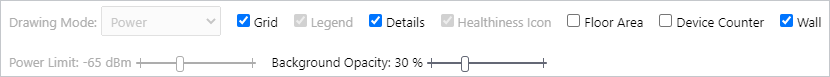 In the Rogue AP View, "Drawing Mode", "Legend", "Healthiness Icon", and "Power Limit" are irrelevant and disabled.