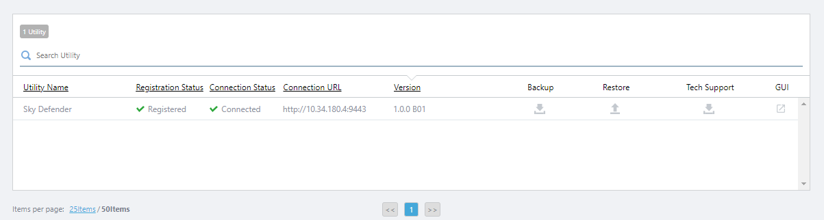 | Search Utility | Lets you filter the list of APs. The Search field lets you enter a partial string to match. The screen displays entries with that string in one of the following fields: "Utility Name", "Connection URL" or "Version". To remove the filter, delete the string from the Search field and press Enter. NoteThe search is case-sensitive. |
