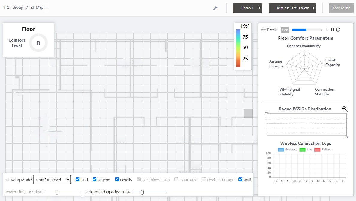 The Wireless Status View for the "1F Map" will appear.