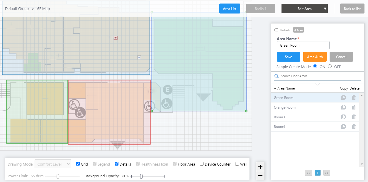 - In the "Edit Area" view of the floor map detail, create an area for area authentication.