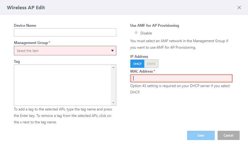 - Enter the required information in the "Wireless AP Registration" dialog box and click "Add".