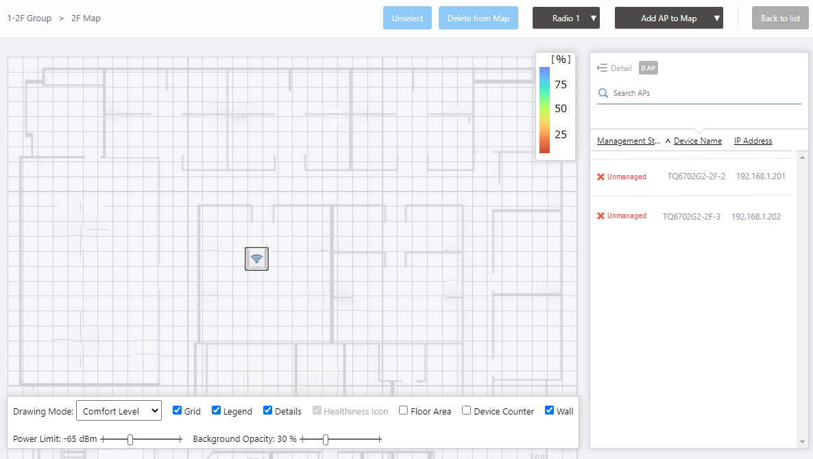 Next let's place the TQ6702 GEN2 on the floor map.- Start with TQ6702 GEN2s on 1F.