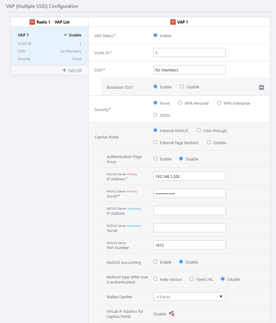 NoteWhen Captive Portal, MAC Access Control, and WPA Enterprise are used together, they are processed in the order of "MAC Access Control" -> "WPA Enterprise" -> "Captive Portal".