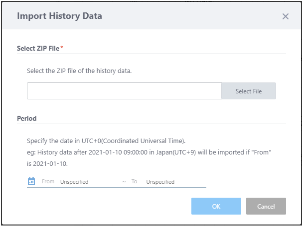 | "Export" button | Displays "Export History Data" dialog box. ![]() Download history data from the VAS selected in the VAS list, specifying the period. The format of the file name is "export_vas_atawc-X.X.X_-YYYYMMDDhhmmss.zip".