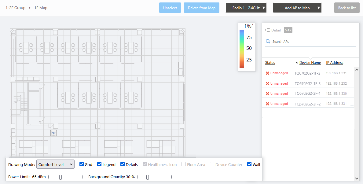 - From the "Management Group" dropdown, select the management group "1-2F Group" that we created earlier in Quick Tour > Configure Channel Blanket (AWC-CB) > Create Management Group.