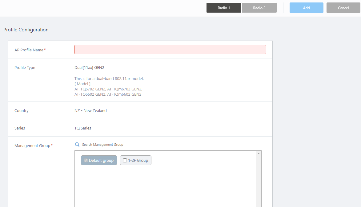 - Enter "TQ6702 GEN2" in "AP Profile Name".