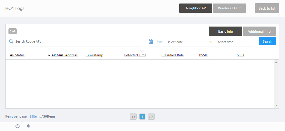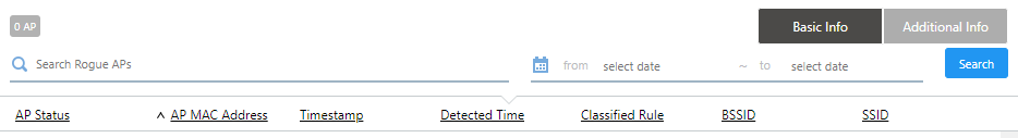| Basic Info/Additional Info switch button | Click to select the type of neighbor AP information to be displayed in the list. By default, only basic information is displayed. |