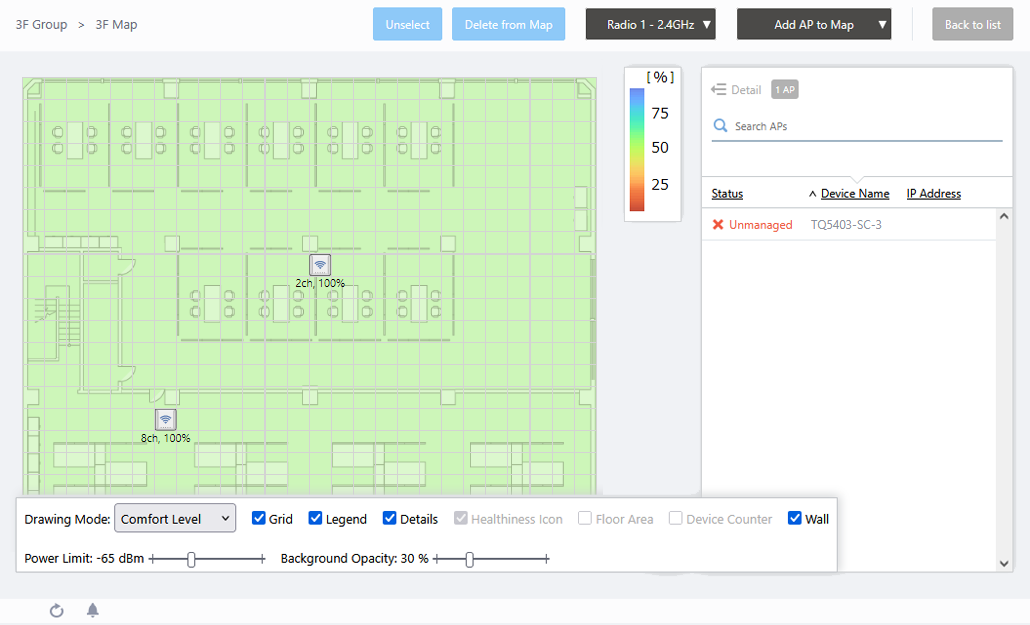 After all the above configuration, you can see the "Details [Smart Connect View]" of the "Floor Map" screen shows the same settings as the configuration example presented.