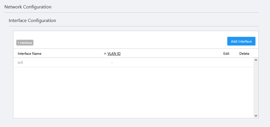 - In "Interface Configuration", create an 802.1Q sub-interface in the VLAN-enabled bridge br0 that bridges the communication for each VLAN specified above.