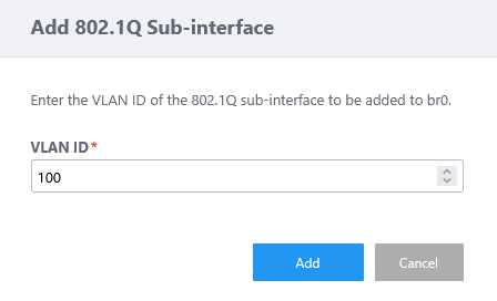 | VLAN ID | Enter the VLAN ID of the 802.1Q sub-interface to be added to br0 with a value from 1 to 4094. The 802.1Q sub-interface to be created will be assigned the interface name "br0.X" (X: the VLAN ID specified in this dialog). |