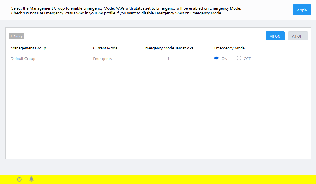 To enable Emergency Mode on APs in all management groups, click the "All ON" button.