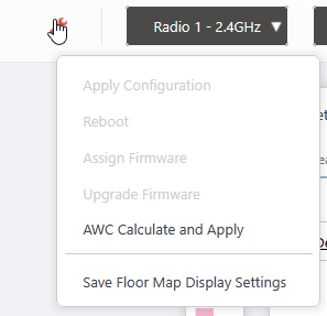 | "Spanner" icon | Hovering the mouse cursor over the Spanner icon shows a dropdown menu including some operations for managed APs. Select APs by checking on the AP list or clicking the AP icons on the floormap, you can then execute the following operation for the selected APs.![]()