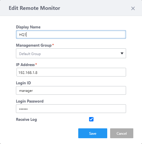 | "Add" button | Save your edits and register the Remote Monitor. |