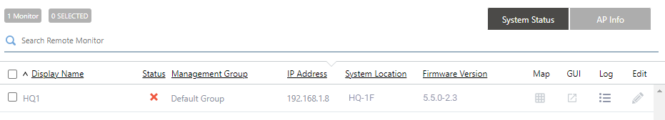 | System Status/AP Info switch button | Click to select the type of Remote Monitor information to display in the list. By default, system status information is displayed. |
