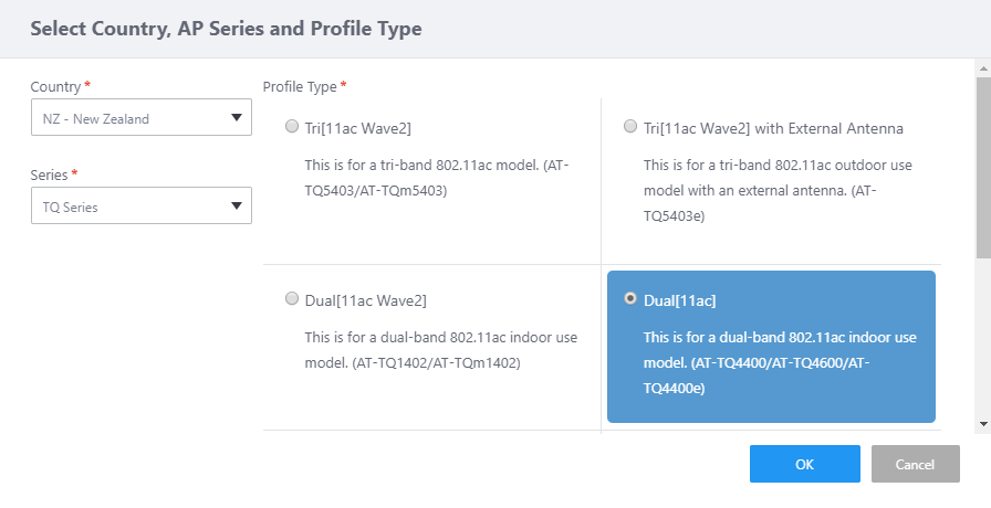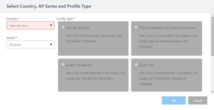 The "Select Country, AP Series and Profile Type" dialog box will appear.