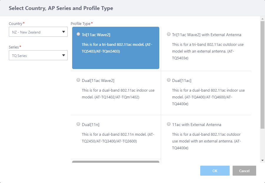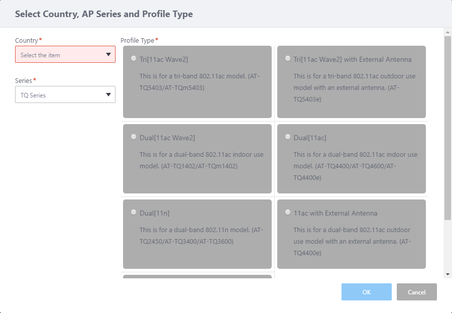 The "Select Country, AP Series and Profile Type" dialog box will appear.