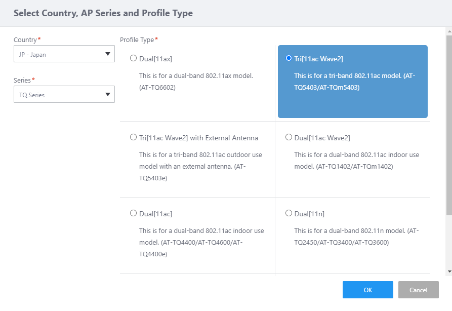 The "Select Country, AP Series and Profile Type" dialog box will appear.