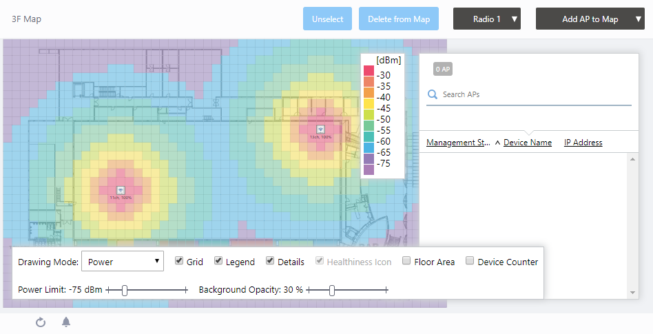 The "Add AP to Map" view will appear. A list of APs in the same Management Group as the map are shown on the right side of the screen.